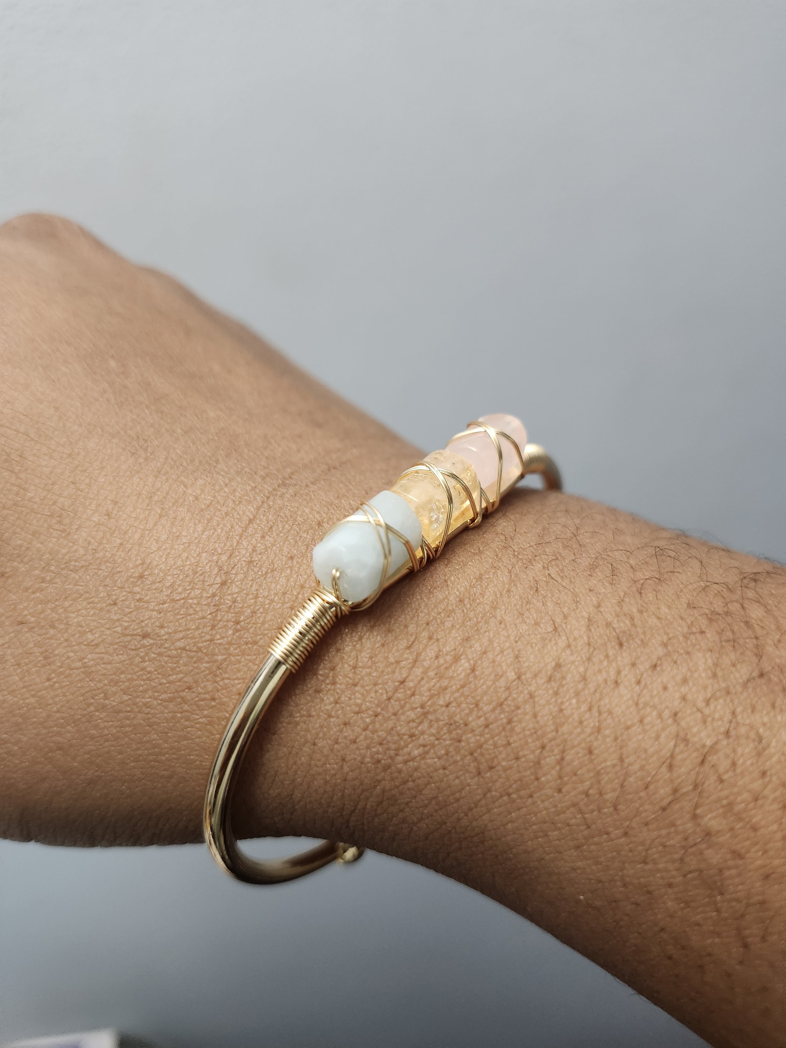 Aquamarine Citrine Rose Quartz Crystal Gold Plated Bangle