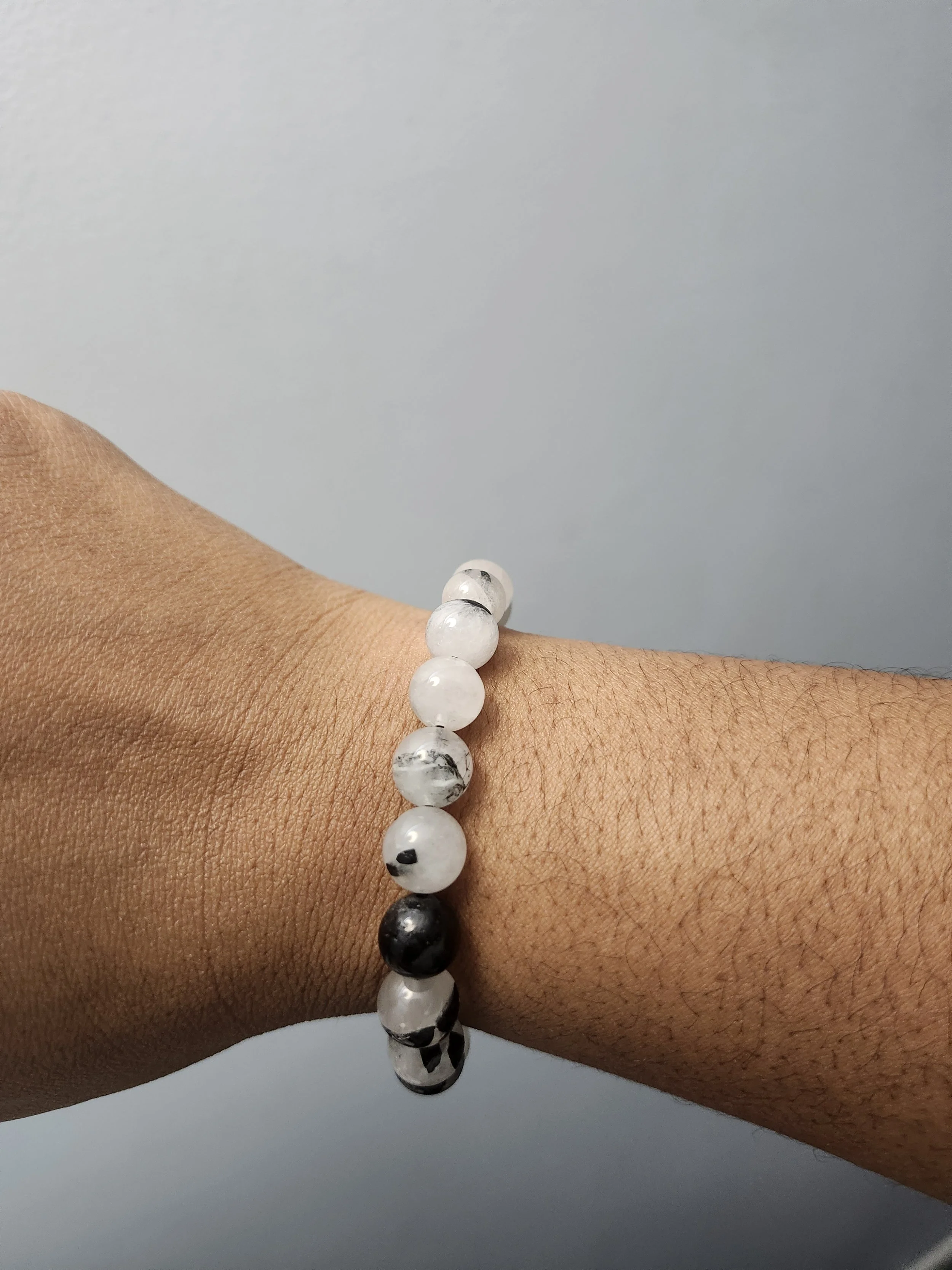 White and Black Tourmaline Beaded Stretch Bracelet