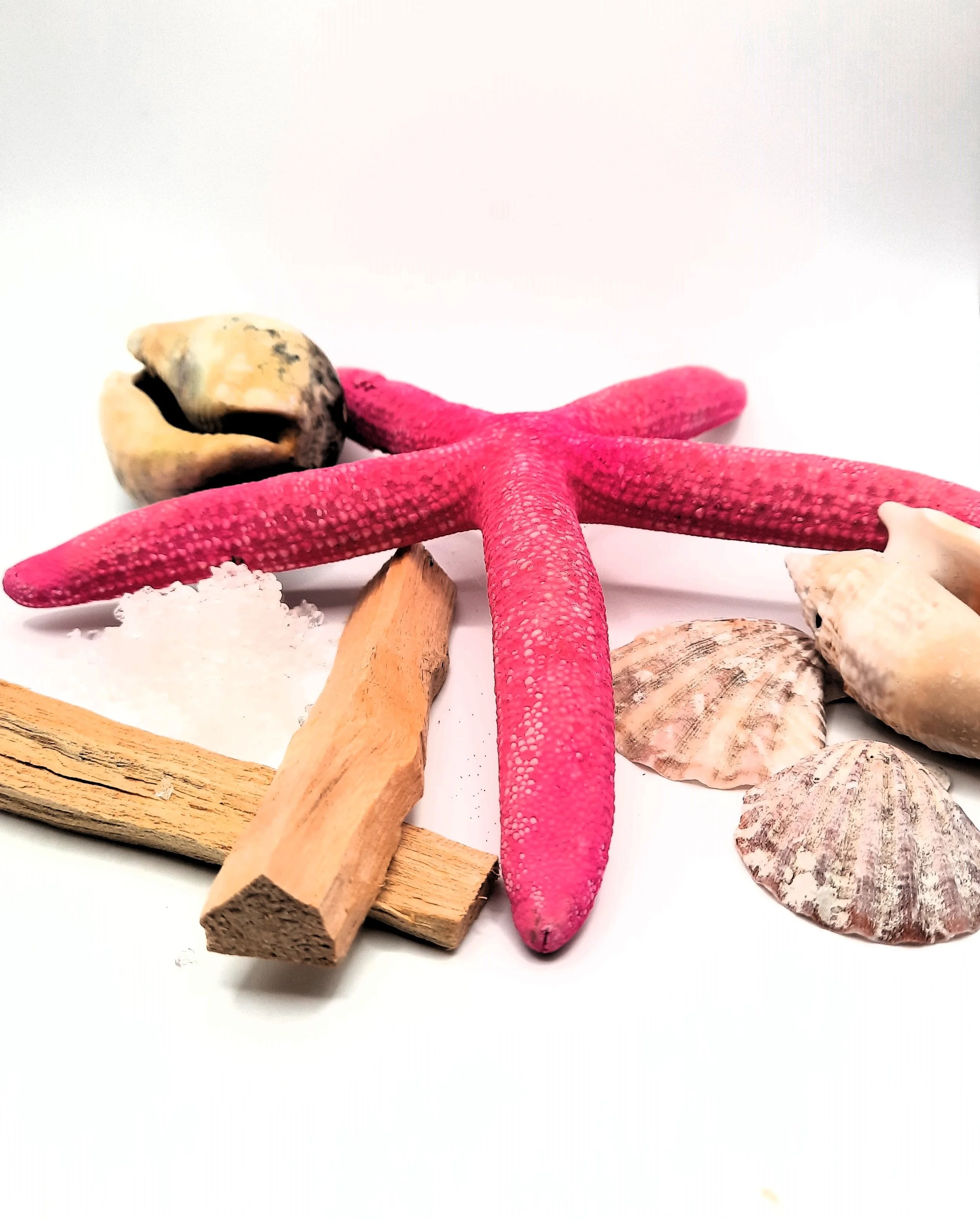 Sweet almond oil, castor oil, olive oil, jojoba oil, vitamin E, bergamot essential oil, palo santo essential oil, sea salt fragrance.